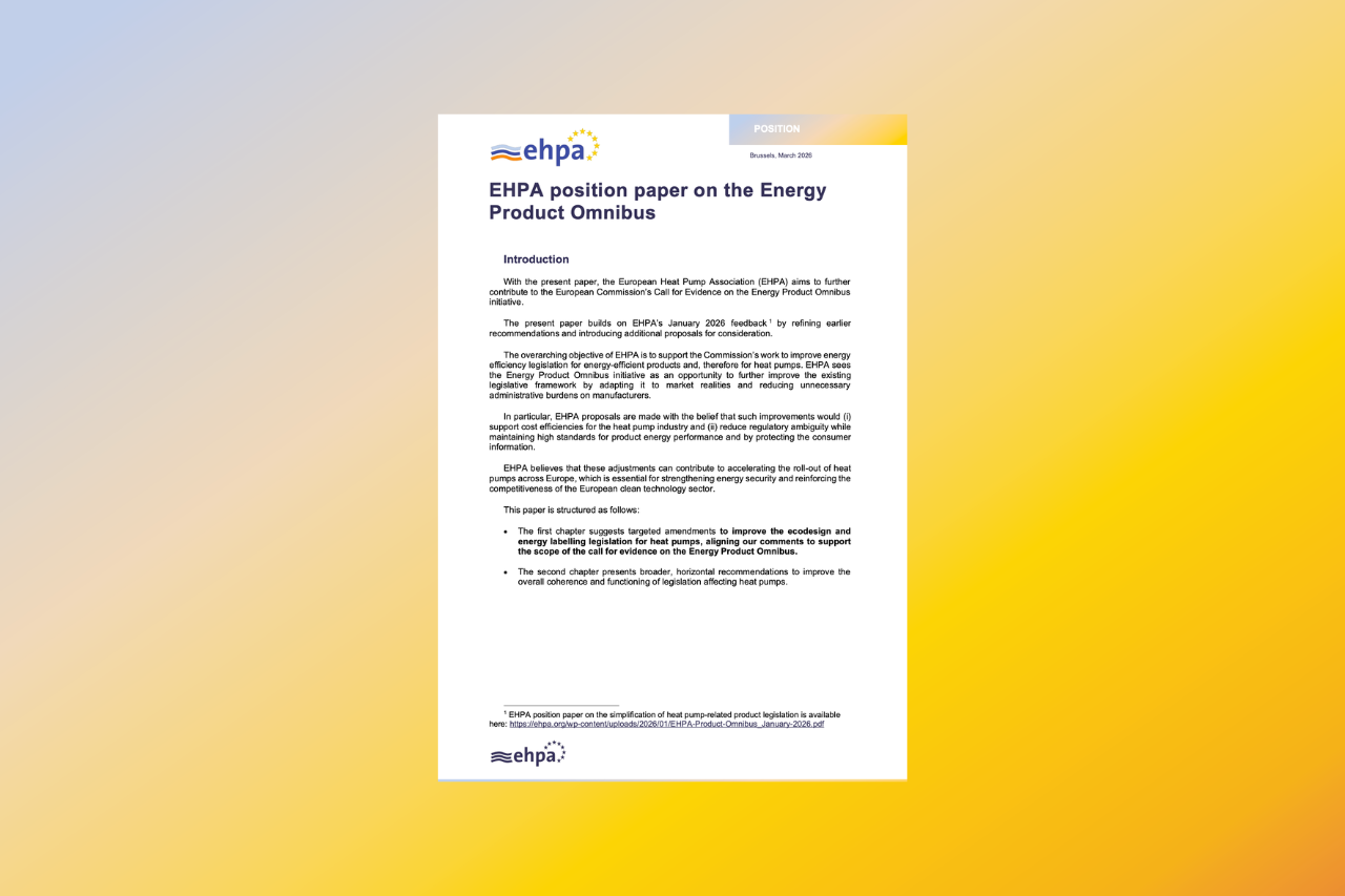 In this position paper, the European Heat Pump Association (EHPA) aims to further contribute to the European Commission’s Call for Evidence on the Energy Product Omnibus initiative.