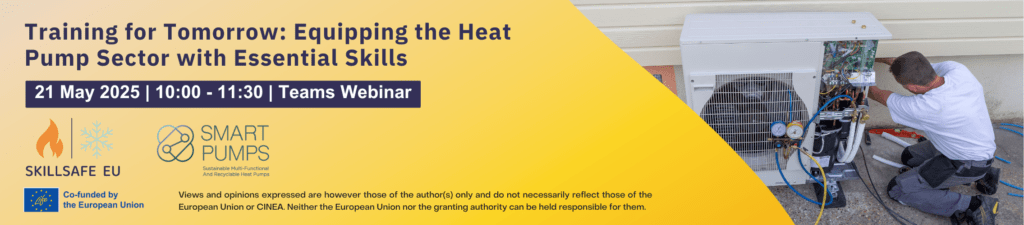 The SKILLSAFE EU and Smart-Pumps projects are joining forces for this first thematic online seminar, bringing together experts and stakeholders from the heat pump and energy sectors.