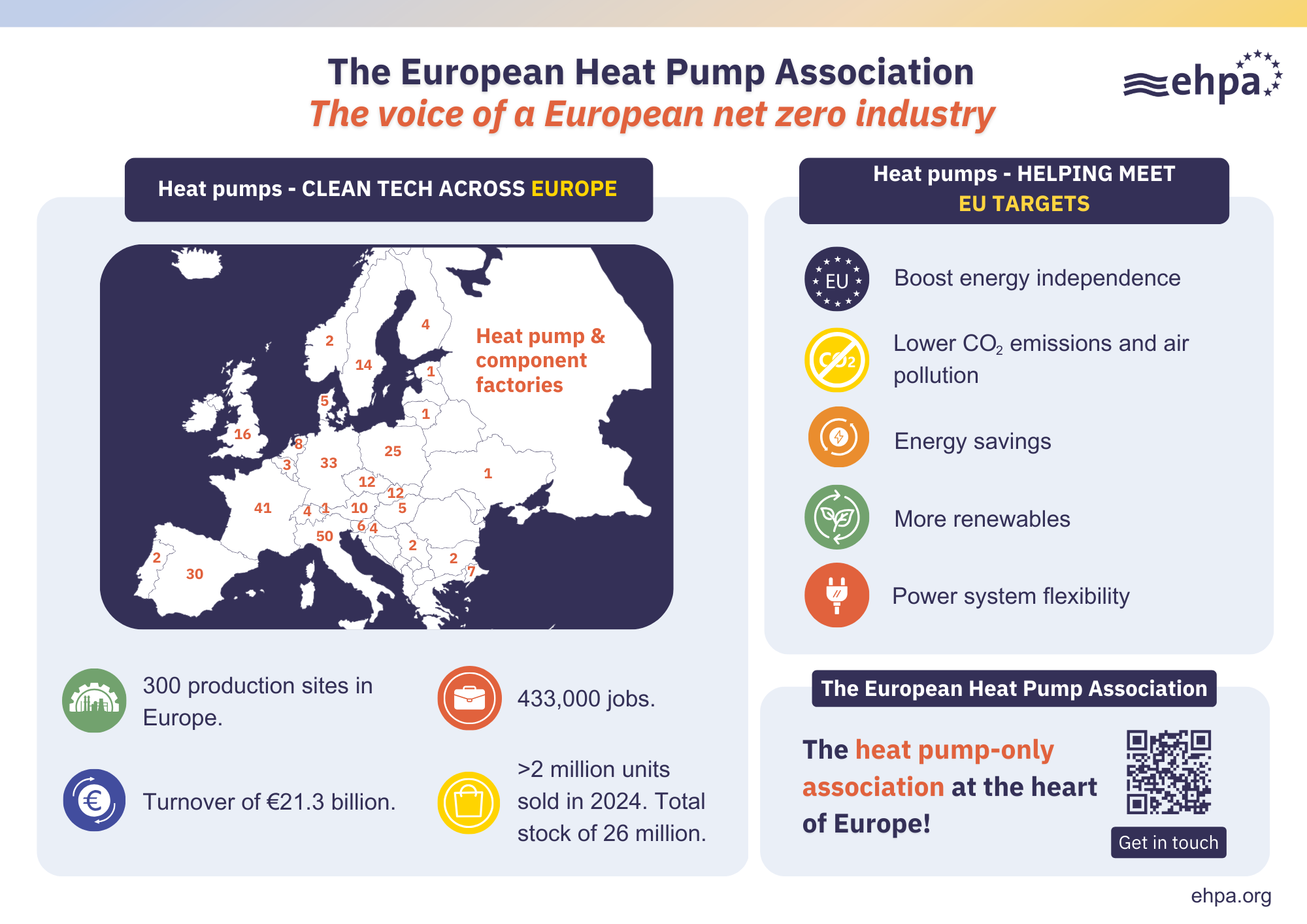 This initiative will work in tandem with the Industrial Accelerator Act – due in 2026 – to drive European industries toward climate neutrality. EHPA actively supports this goal: the heat pump sector must be front and centre as a key net zero European industry.